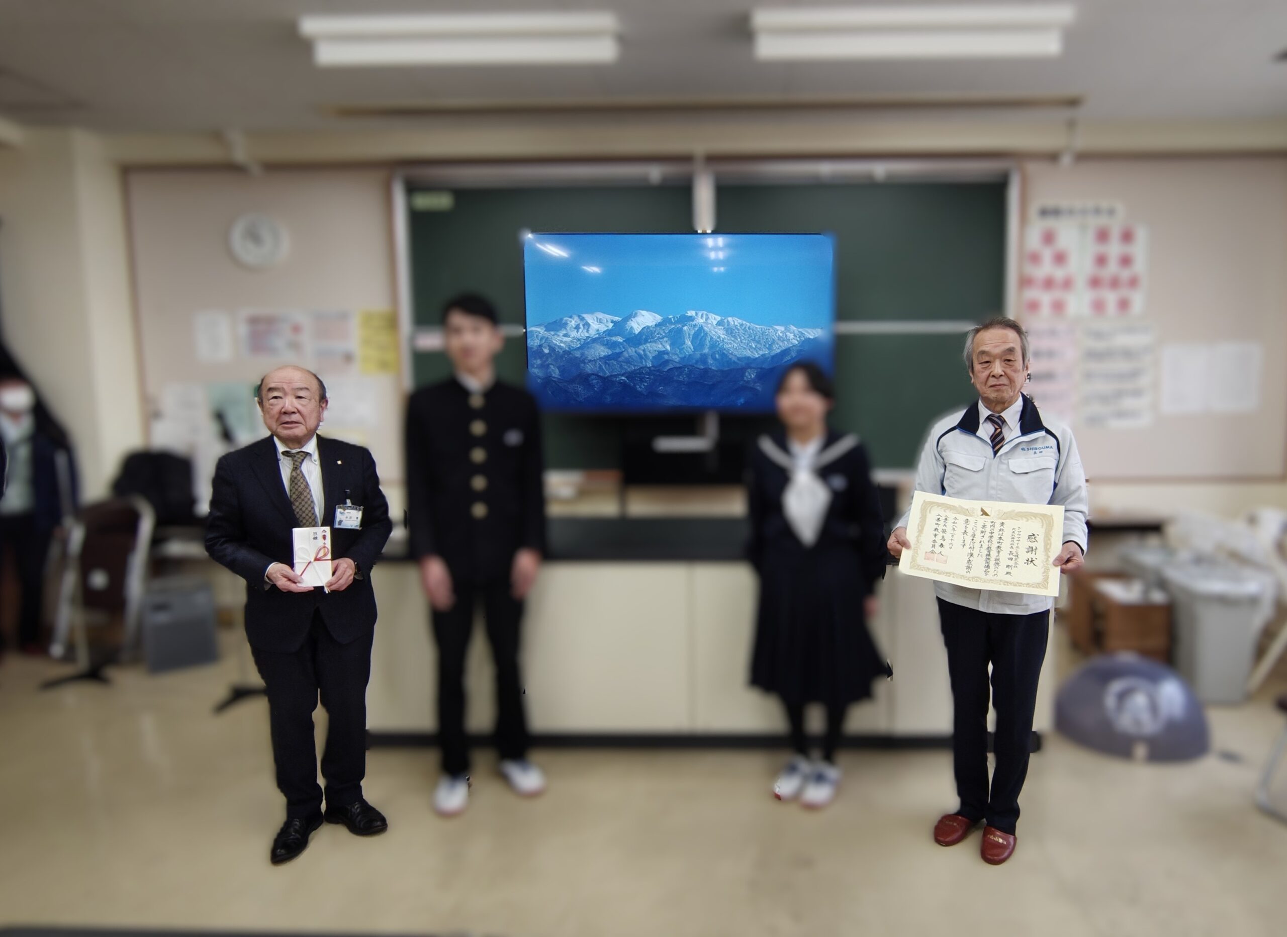 大型モニターを寄贈し、1月16日(金)に入善町立入善中学校にて、贈呈式がおこなわれました。